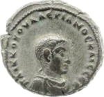 bare-headed, draped and cuirassed bust of Valerian II, right, seen from front |
