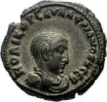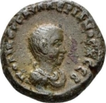 bare-headed, draped and cuirassed bust of Saloninus, right, seen from front |
