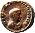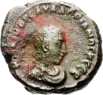 bare-headed, draped and cuirassed bust of Saloninus, right, seen from front |