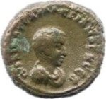 bare-headed, draped and cuirassed bust of Saloninus, right, seen from front |