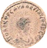 bare-headed, draped and cuirassed bust of Saloninus, right, seen from front |