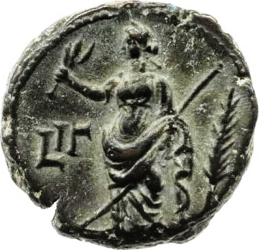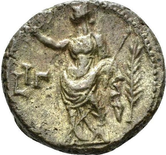 Milan 1734: read as LI (so also Legutko 059), but the date is set too far to the left, the bust type does not fit in this year, the style is that of year 13, and the palm branch in r. field is not appropriate to this year