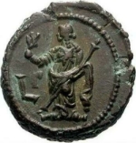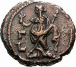 traces of overstriking on both faces: perhaps profile of ruler r. on obv
