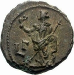 rev. Eirene: overstruck obv. on obv. of Aurelian, year uncertain. Traces on both faces