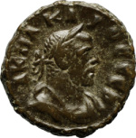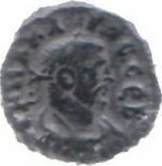 laureate, draped and cuirassed bust of Carus, right, seen from front