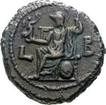 Athena (or Roma) seated left, holding Nike and spear; at feet, shield