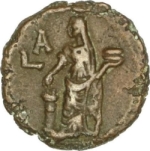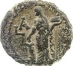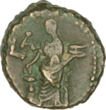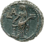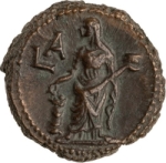 Eusebeia standing left, placing incense on altar to left, and holding box of incense