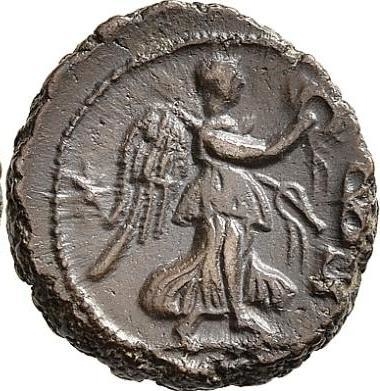 Reverse design Nike advancing right, holding wreath and palm; to left or right, star