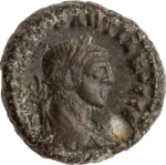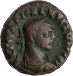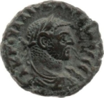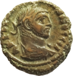Obverse design laureate, draped and cuirassed bust of Diocletian, right, seen from rear