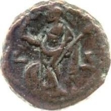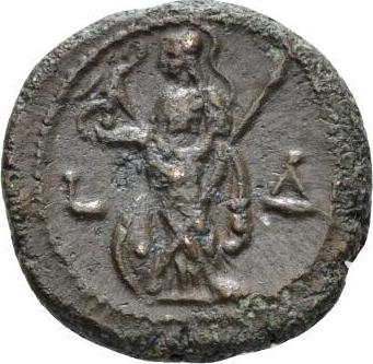 Athena standing left, holding Nike and transverse spear; at feet, shield