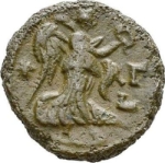 Reverse design Nike advancing right, holding wreath and palm; to left or right, star