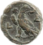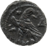 Reverse design eagle standing left, head right, holding wreath in beak; to left, star