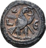 Reverse design eagle standing right, holding wreath in beak; behind, palm; to left, star