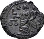 Dikaiosyne standing left, holding scales and cornucopia; to left or right, star