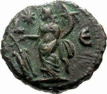 Reverse design Tyche standing left, holding rudder and cornucopia; to left or right, star