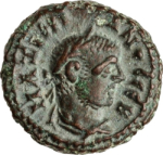 laureate, draped and cuirassed bust of Maximian, right, seen from rear