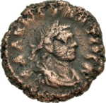 laureate, draped and cuirassed bust of Constantius, right, seen from front