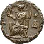 Athena (or Roma) seated left, holding Nike and spear; below, shield; to right, star