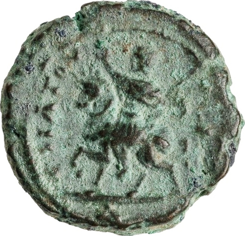 emperor riding on horse left, right arm raised and holding spear