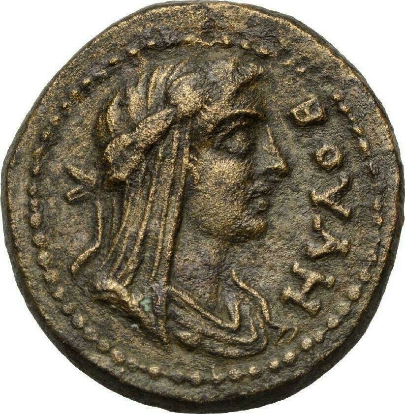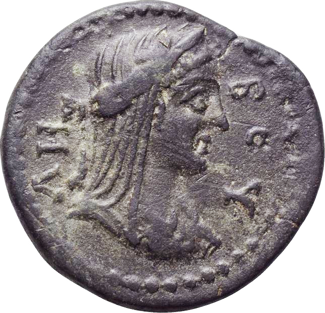 Hygieia standing facing, head right, feeding serpent; Asclepius standing facing, head left, resting on serpent-staff