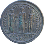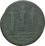 | Reverse design | Athena standing right, holding spear and shield resting on ground, with Zeus Lydios standing left, holding eagle and sceptre, and Apollo-Tyrimnaios standing left, holding branch and double axe |