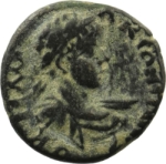 laureate, draped and cuirassed bust of Caracalla, right, seen from front