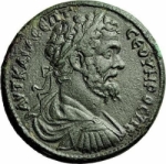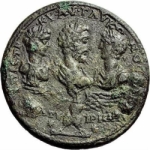 laureate, draped and cuirassed bust of Septimius Severus, right, seen from rear, between, on the left, laureate, draped and cuirassed bust of Caracalla, right, seen from front, and on the right, laureate, draped and cuirassed bust of Geta, left, seen from front; behind, eagle standing facing, head left, spreading wings, between two stars |