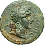 Heracles standing front, head right, resting right on club and holding in left apples of the Hesperides; lion skin hangs over left arm