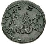 Triptolemus driving biga of two winged serpents, right, holding reins