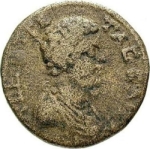 bare-headed, draped and cuirassed bust of Geta, right, seen from front