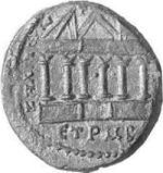 temple with six columns with broken pediment