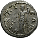 Demeter standing facing, head left, holding ears of corn and resting on sceptre
