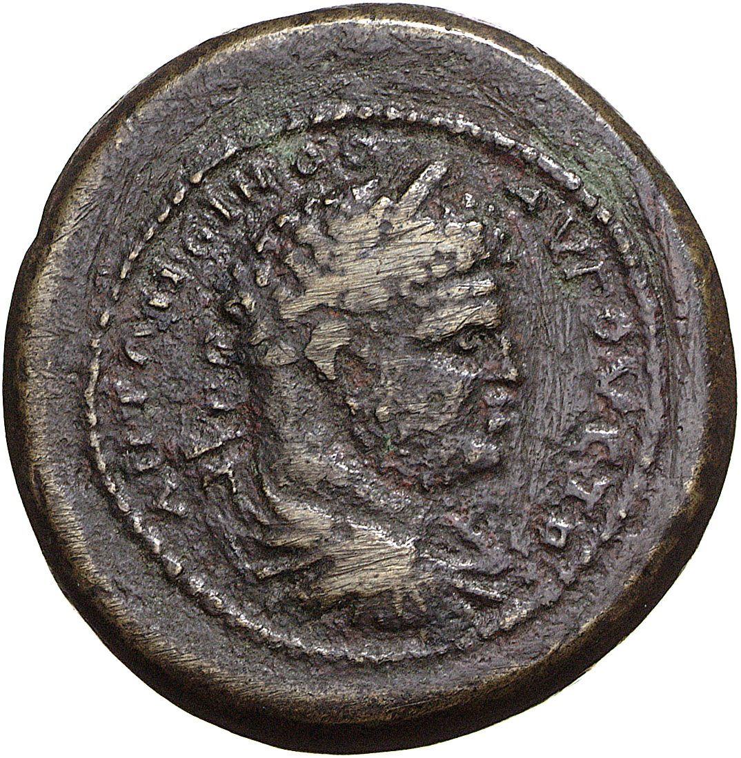 laureate, draped and cuirassed bust of Caracalla, right, seen from rear