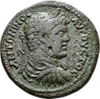 laureate, draped and cuirassed bust of Caracalla, right, seen from rear