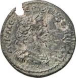 Tyche standing facing head left holding rudder in right and cornucopia in left |