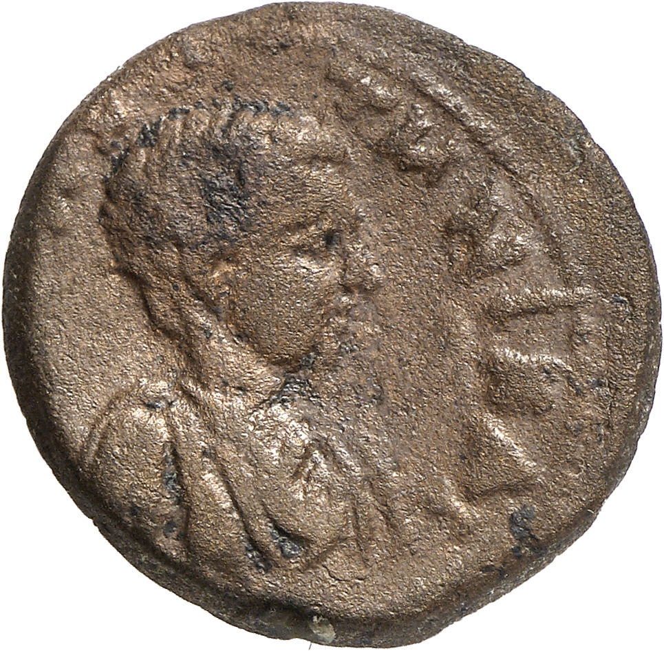 bare-headed, draped and cuirassed bust of Diadumenian, right, seen from front