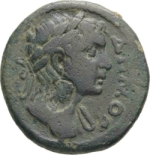 laureate head of the Demos (youthful), right, drapery on left shoulder
