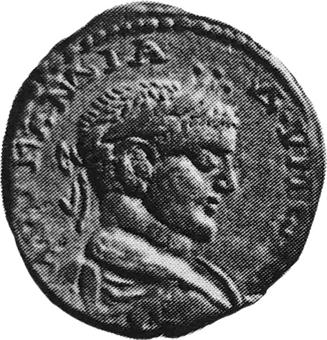laureate, draped and cuirassed bust of Diadumenian, right, seen from rear