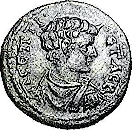 bare-headed, draped and cuirassed bust of Geta, right, seen from rear