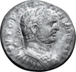 laureate and cuirassed bust of Caracalla, right, seen from front
