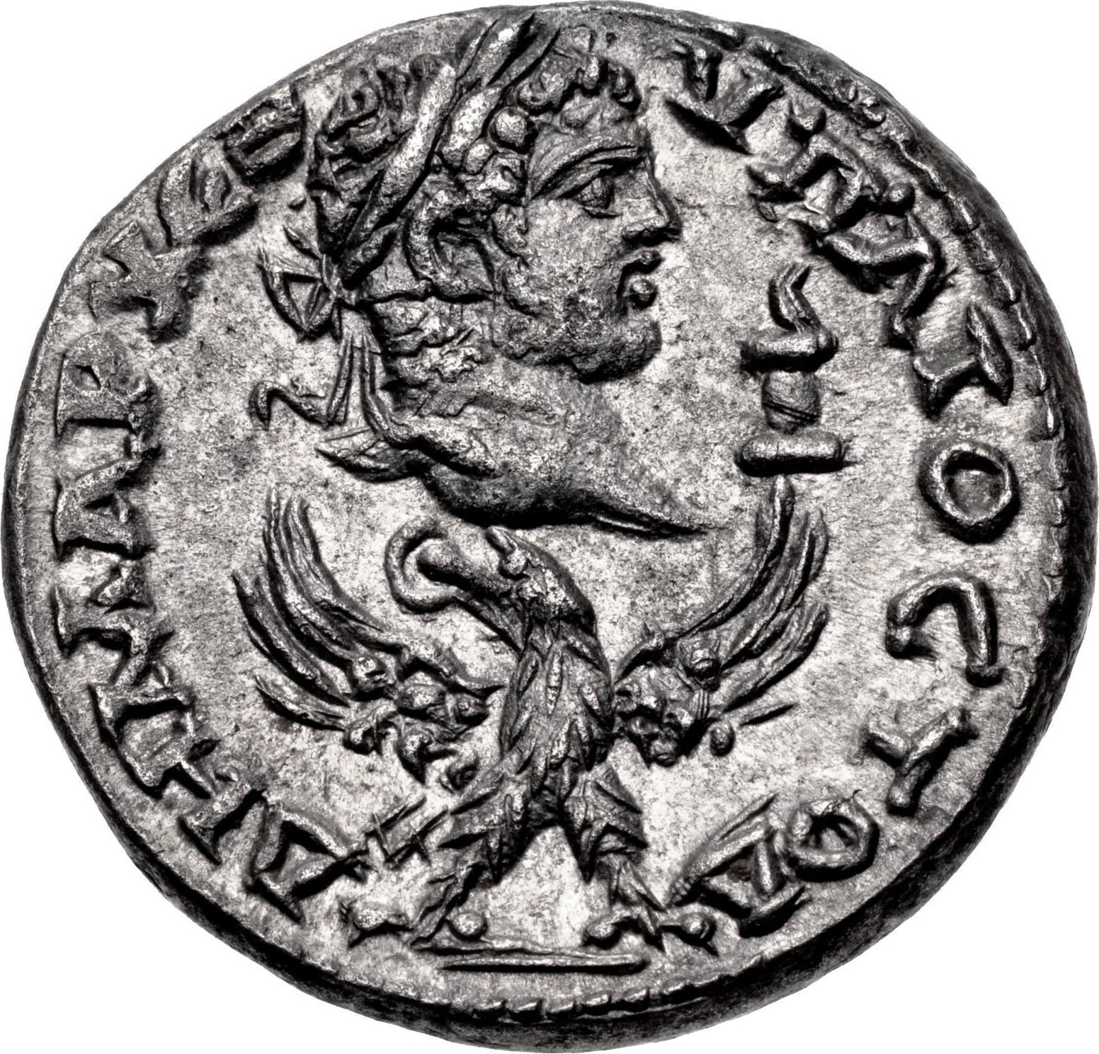 laureate head of Caracalla, right
