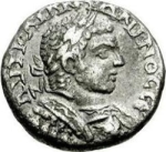 laureate and cuirassed bust of Caracalla, right, seen from front