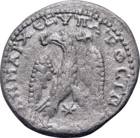eagle standing facing (on club?), head and tail left, with wings spread, holding wreath in beak; between legs, six-pointed star; in upper right field, Marnas symbol