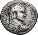 laureate, draped and cuirassed bust of Caracalla, right, seen from rear