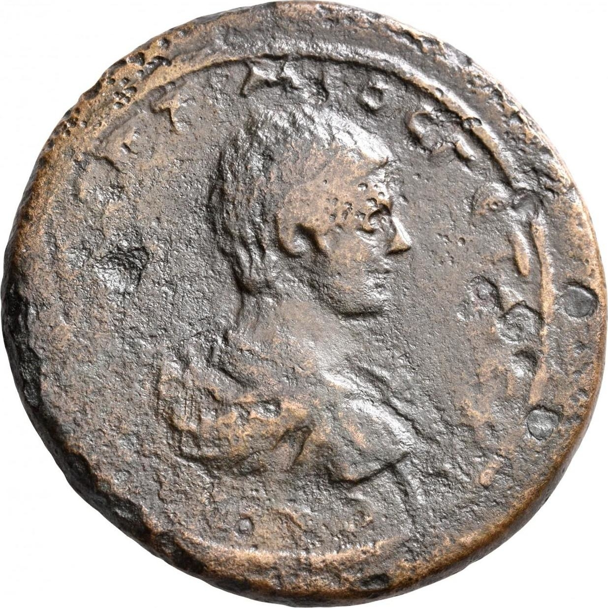 bare-headed, draped and cuirassed but of Geta, right, seen from rear