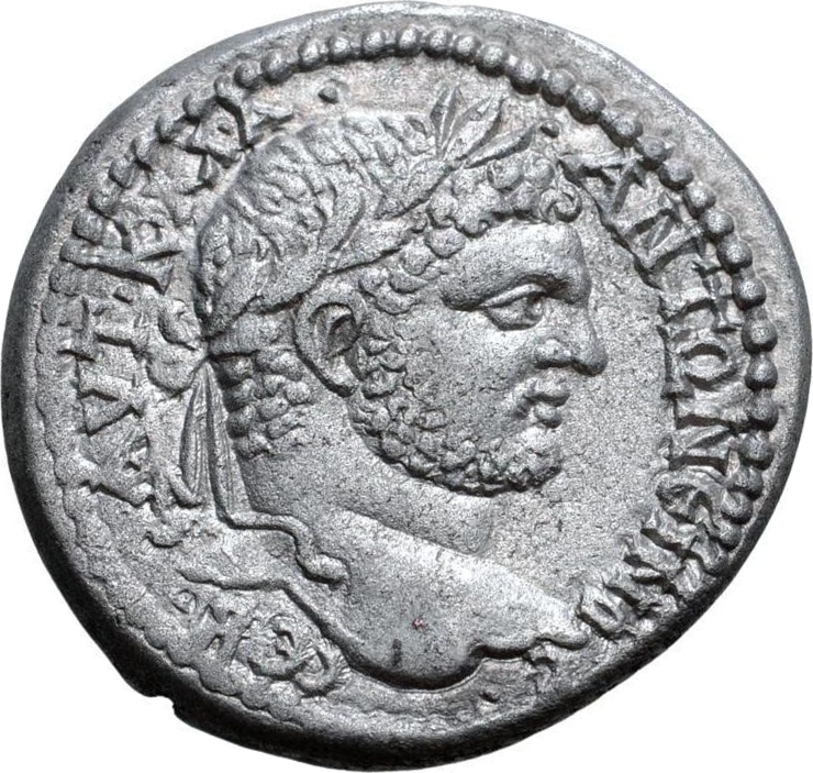 laureate head of Caracalla, right