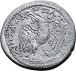 eagle seen from front, with wings spread, head and tail left, wreath in beak; in field, left and right, Ζ Ɛ retrograde; between legs, Υ
