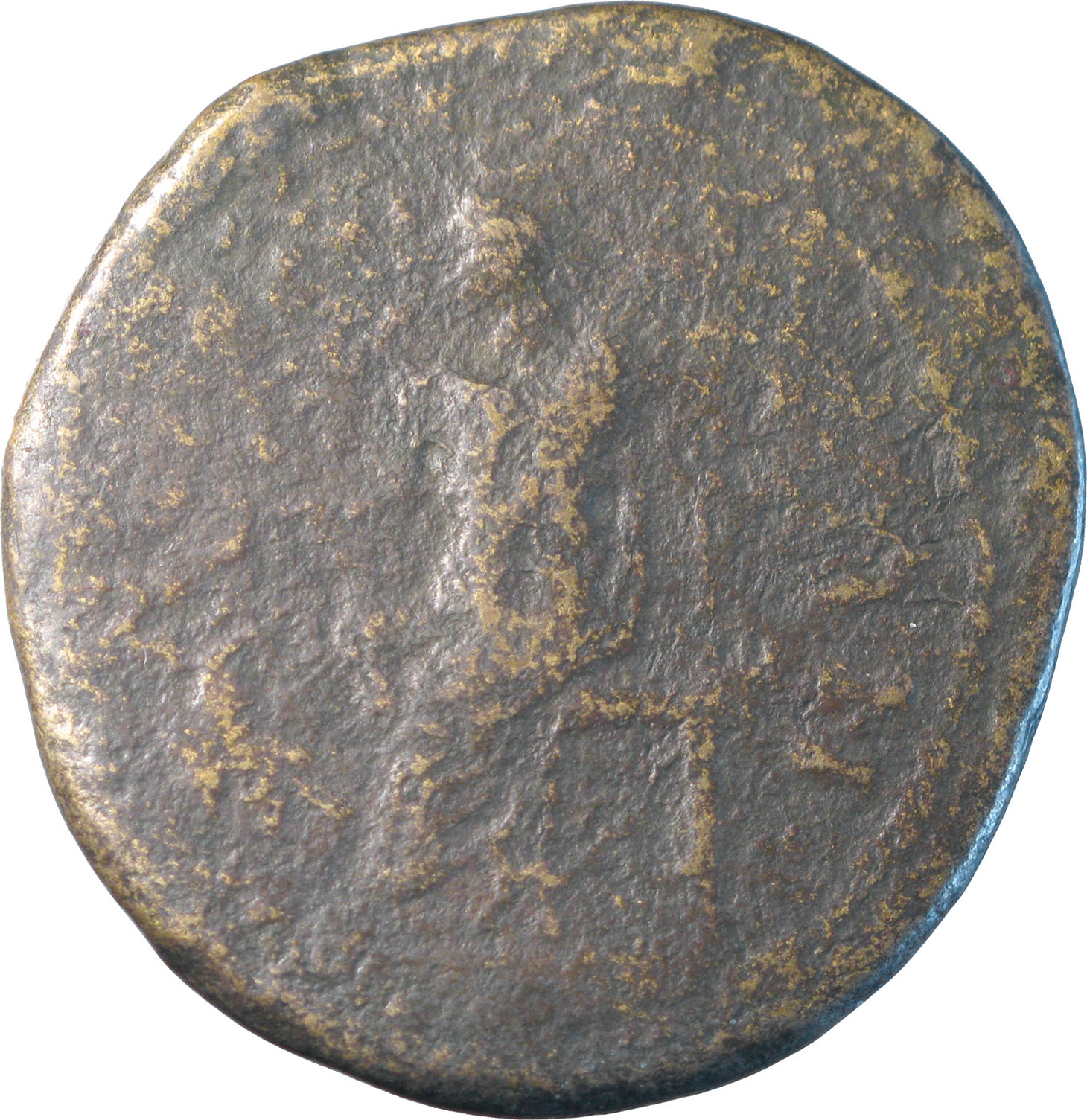 Zeus wearing himation seated left, holding patera in his right hand, his left resting on sceptre; at his feet, eagle