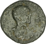 bare-headed, draped and cuirassed bust of Diadumenian, right, seen from rear