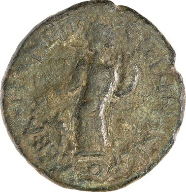 Tyche standing left, holding rudder and cornucopia